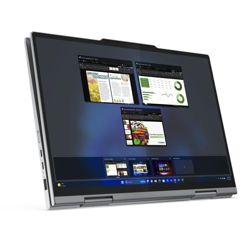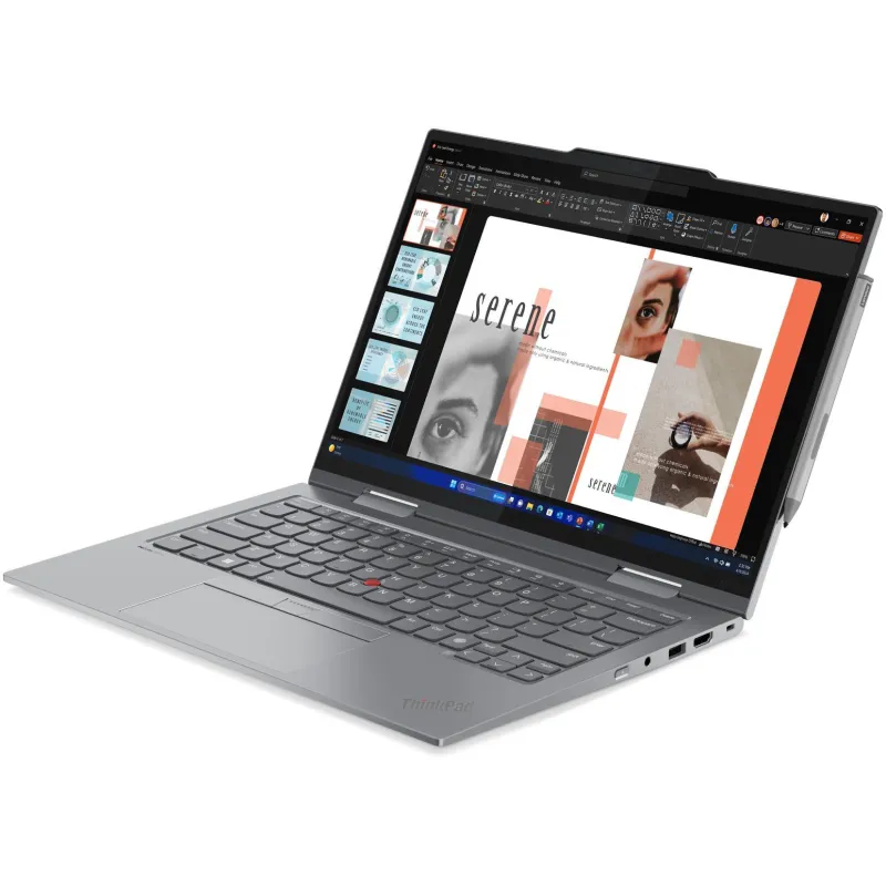 El Lenovo 21KE003SSP es un portátil híbrido 2-en-1 que combina versatilidad y potencia en un diseño convertible de aluminio gris. Con su factor de forma en modo "carpeta", este equipo es perfecto tanto para el trabajo como para el entretenimiento. Su pantalla táctil de 14 pulgadas con resolución WUXGA de 1920 x 1200 píxeles y tecnología IPS ofrece una visualización clara y vibrante con un brillo de hasta 500 nits, ideal para condiciones de luz intensa.