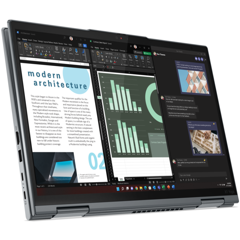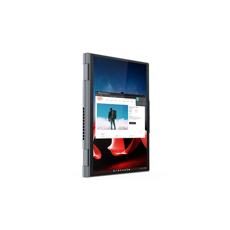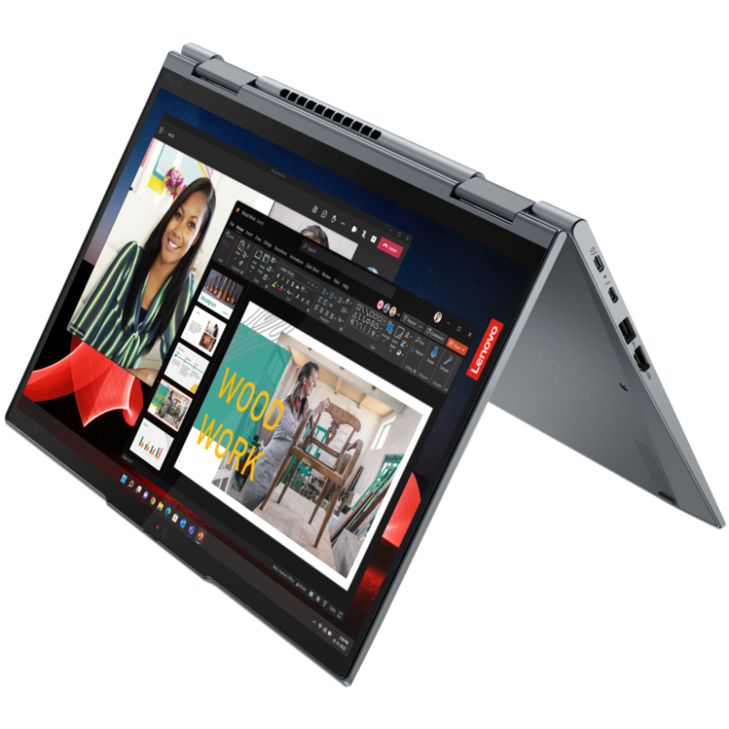 ESCRIBE. ESBOZA. DESLIZA: Gracias a su bisagra de 360 grados, el portátil 2-en-1 ThinkPad X1 Yoga de 8.ª generación cambia rápidamente entre los modos portátil, tablet, tienda y stand. No importa adónde te lleve tu trabajo, hay un modo para acomodarse a tu estilo y ayudarte a hacer las cosas con mayor rapidez. Pasa sin problemas de escribir en el teclado a hacer bocetos, firmar documentos o tomar notas en la pantalla con el lápiz integrado totalmente recargable. O simplemente desliza el dedo cuando estés usando el dispositivo en modo tablet.