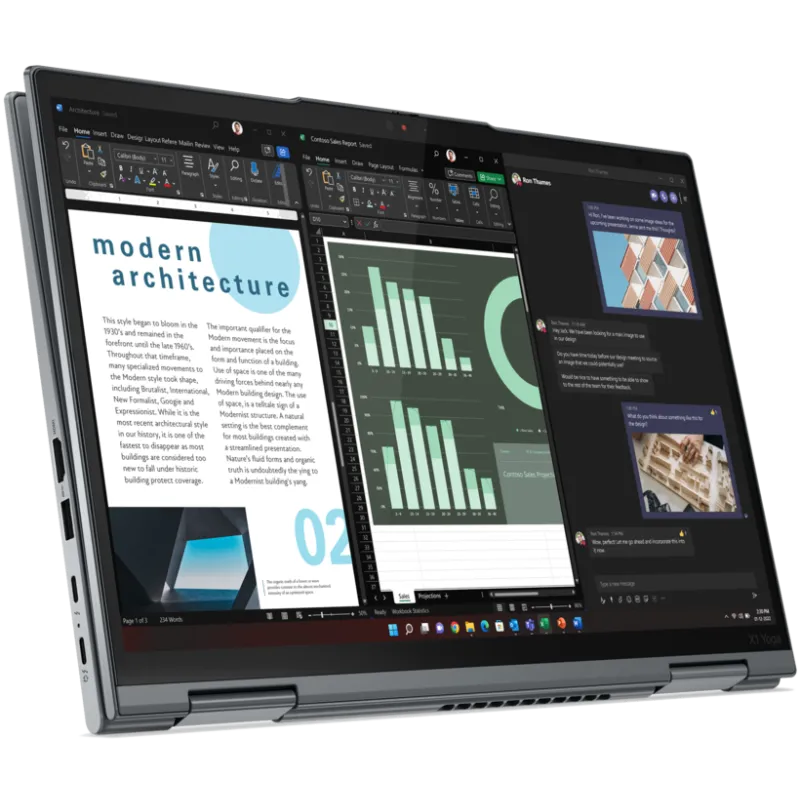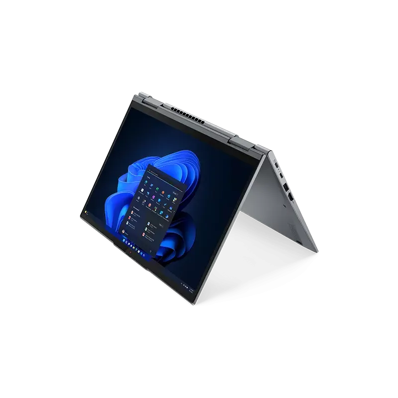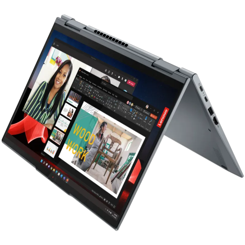 ESCRIBE. ESBOZA. DESLIZA: Gracias a su bisagra de 360 grados, el portátil 2-en-1 ThinkPad X1 Yoga de 8.ª generación cambia rápidamente entre los modos portátil, tablet, tienda y stand. No importa adónde te lleve tu trabajo, hay un modo para acomodarse a tu estilo y ayudarte a hacer las cosas con mayor rapidez. Pasa sin problemas de escribir en el teclado a hacer bocetos, firmar documentos o tomar notas en la pantalla con el lápiz integrado totalmente recargable. O simplemente desliza el dedo cuando estés usando el dispositivo en modo tablet.