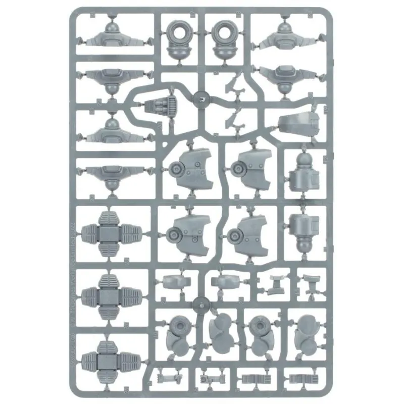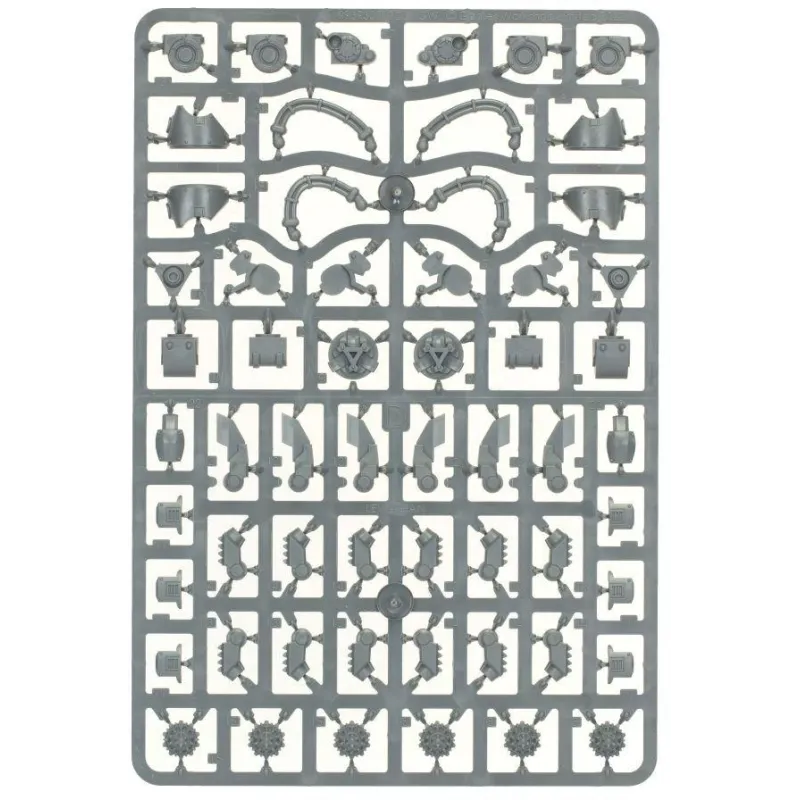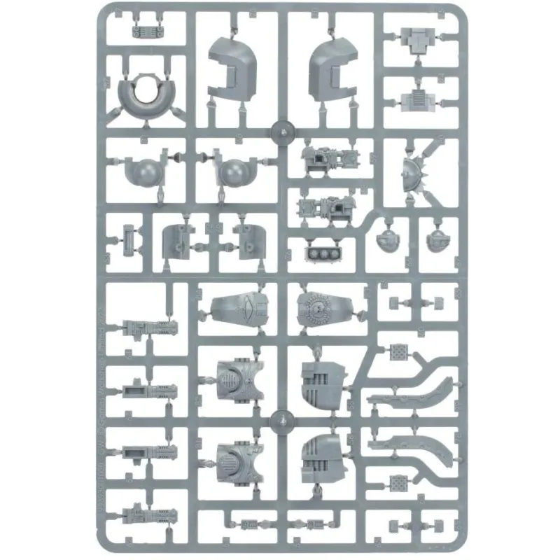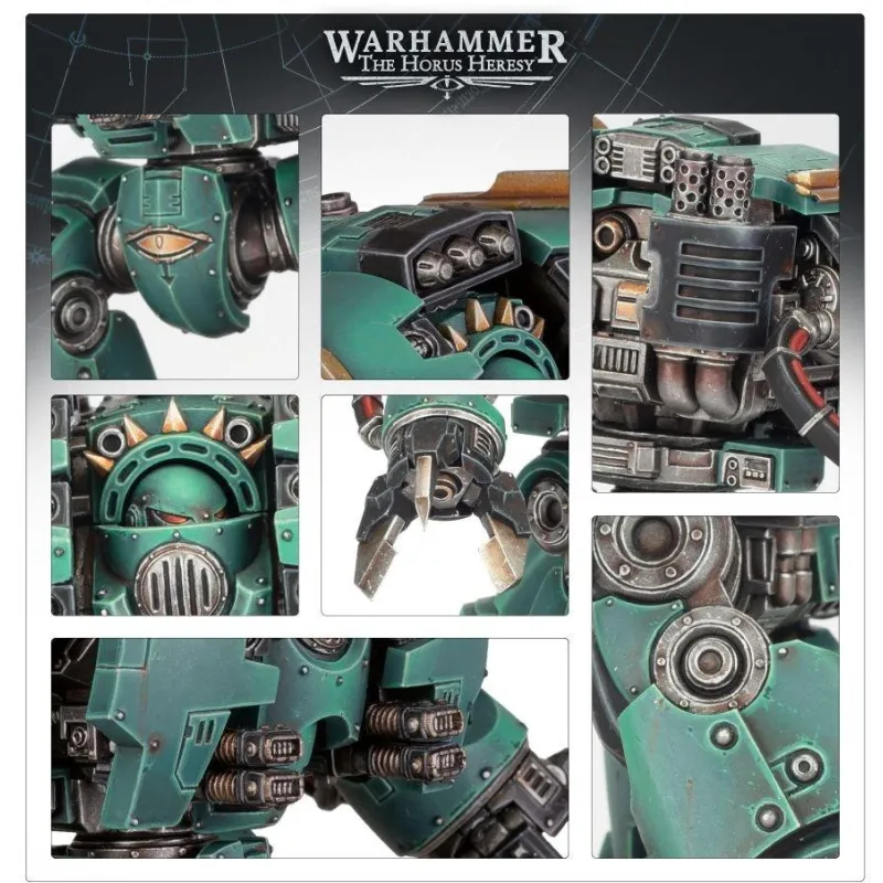 Este kit comprende 153 componentes de plástico y se suministra con una base redonda Citadel de 80 mm, así como una hoja de transferencia de vehículos Legiones Astartes que contiene 44 marcas e iconos opcionales para las legiones de los Hijos de Horus y Puños Imperiales. Esta miniatura se suministra sin pintar y requiere ensamblaje; recomendamos usar pegamento plástico Citadel y pinturas Citadel.