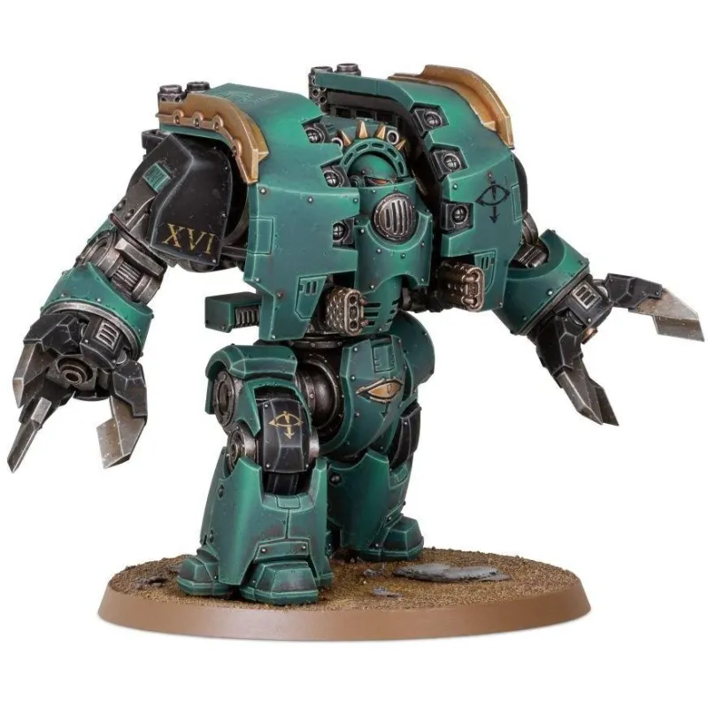 Figura Leviathan Siege Dreadnought with Claw & Drill Weapons es un desarrollo alternativo del exitoso diseño Contemptor. Estos raros y poderosos motores son apreciados por los comandantes Astartes, reconocidos como unidades de asedio y cazadores-asesinos salvajemente poderosas que pueden aplastar cualquier oposición con una carga destructora imparable. Sin embargo, tal fuerza abrumadora tiene un costo: los sistemas de un Leviathan imponen una carga onerosa y, en última instancia, letal sobre su ocupante, el incumbente sepultado arde intensamente pero solo brevemente en su segunda vida.