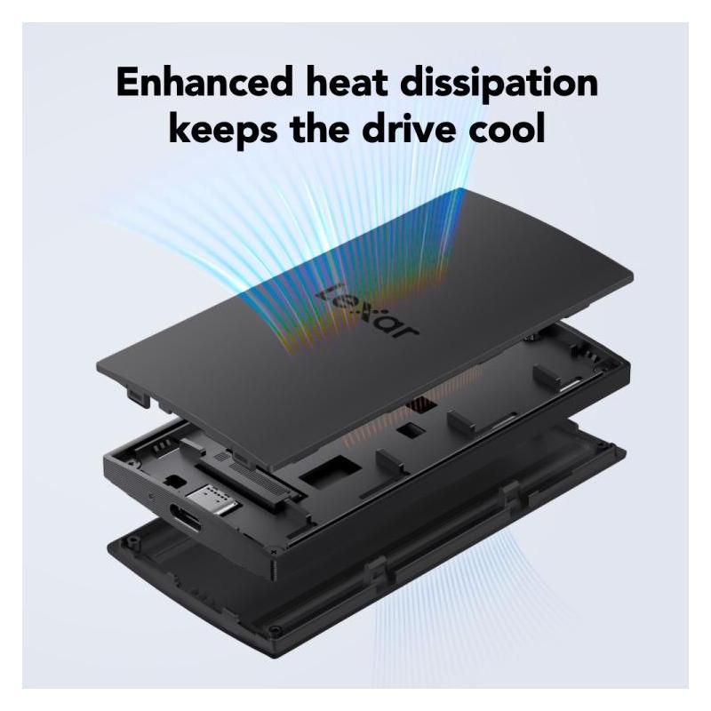DISIPACIÓN DE CALOR MEJORADA: Las hojas de grafito de doble capa integradas conducen rápidamente el calor, manteniendo la unidad fresca, incluso durante un uso intensivo y transferencias ultrarrápidas.