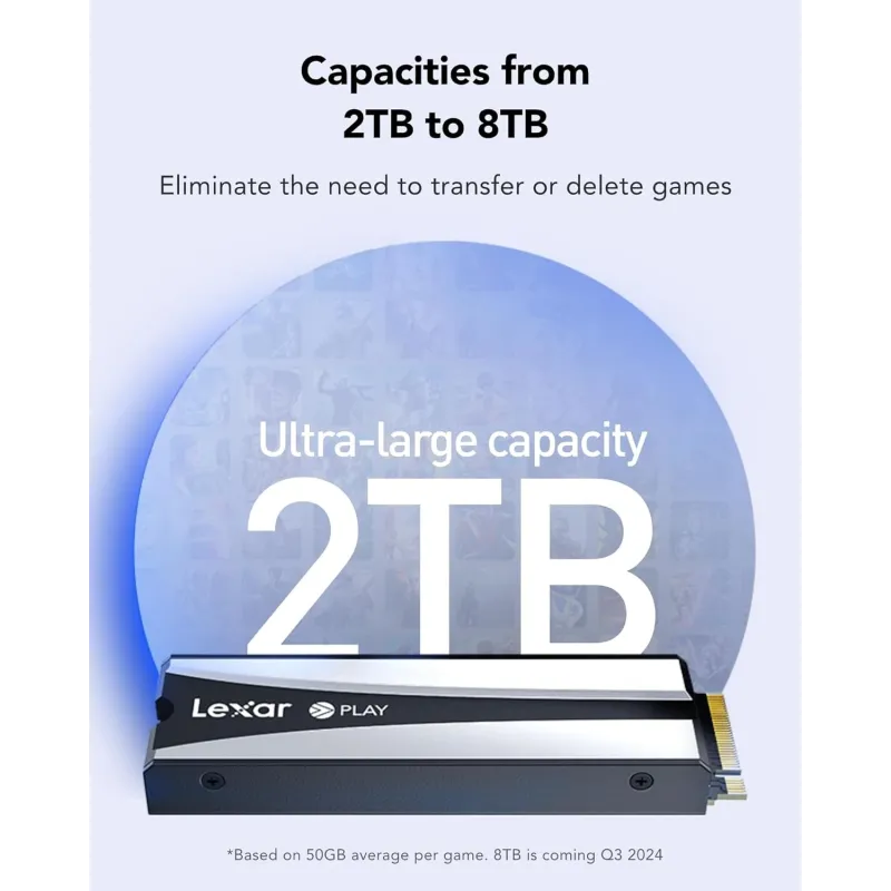 Disco Duro SSD Lexar Play 2280 2TB LNMPLY8002T-RNNNG2 con interfaz PCI Express 4.0, velocidad de lectura 7400 MB/s , capacidad de 2 TB y compatible con PS5