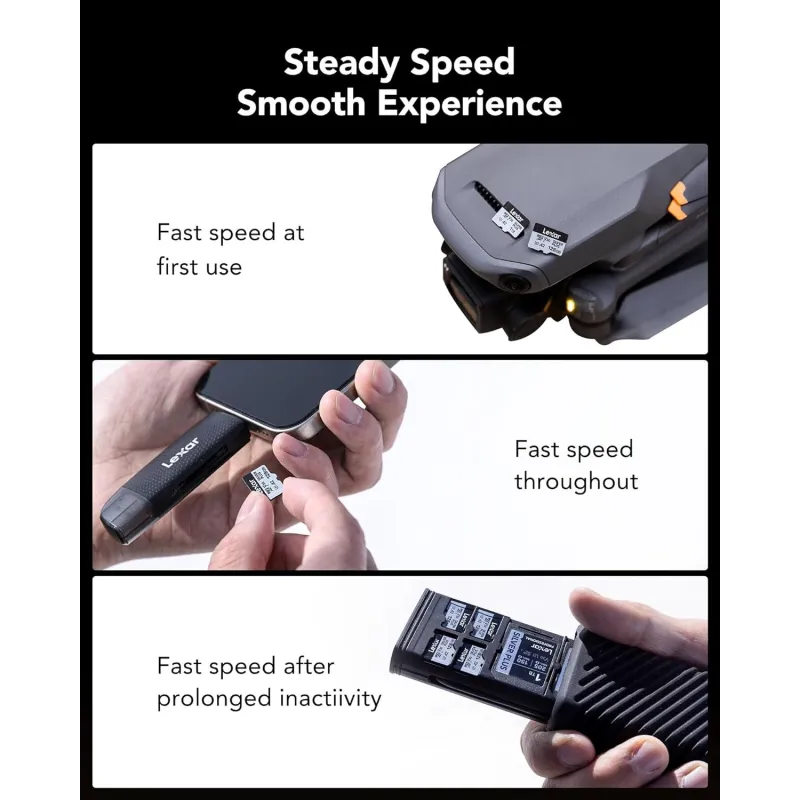Gracias a su tecnología UHS-I y su clasificación A2, la Tarjeta de Memoria Lexar Professional Silver Plus 1TB LMSSIPL00 está optimizada para ejecutar aplicaciones directamente desde la tarjeta con mayor rapidez. Esta combinación permite un rendimiento fluido y estable, incluso en dispositivos que exigen velocidad constante. La tecnología UHS-I también mejora la eficiencia energética y la compatibilidad con una amplia gama de dispositivos. Tanto si la utilizas en una cámara de acción, un smartphone o una consola, esta tarjeta garantiza un uso versátil y potente.