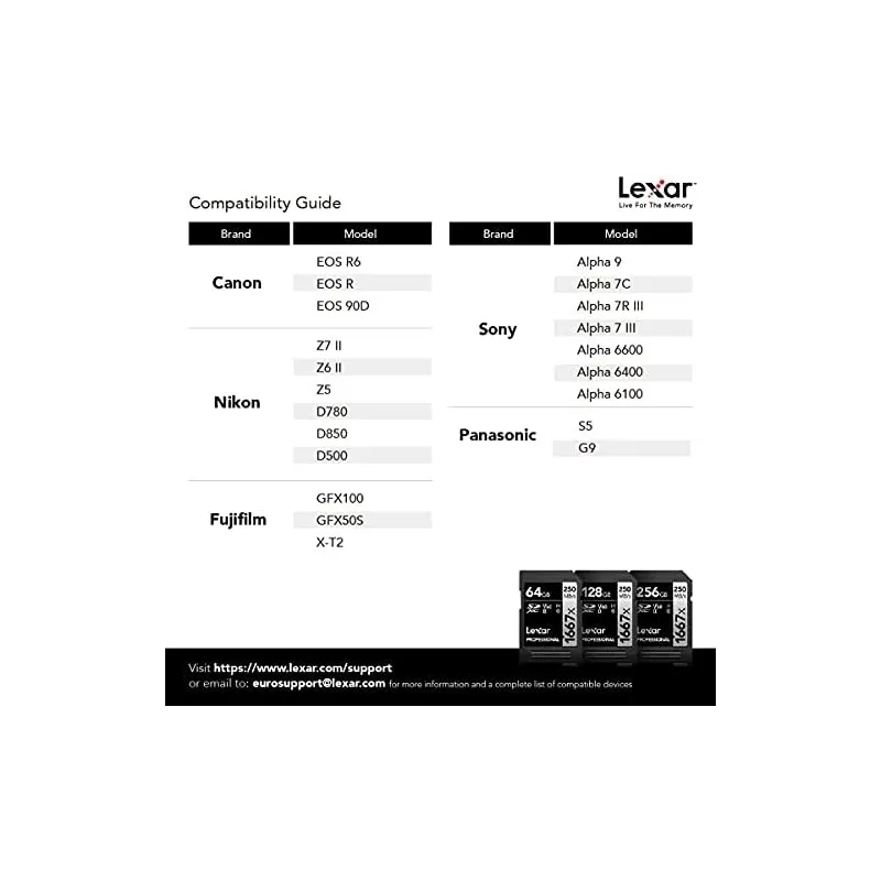 Tarjeta de Memoria Lexar SDXC. 256 GB LSD256CB1667 con velocidad de lectura 250 MB/s, clase de velocidad de vídeo V60 y tecnología UHS-II