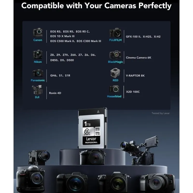 Tarjeta de Memoria Lexar SILVER CFEXPRESSPROBSILVER1TB con velocidad de lectura 1750 MB/s, interfaz PCIe Gen3 ×2 y resistencia a golpes