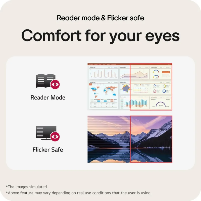 PRODUCTIVIDAD DIARIA CON COMODIDAD VISUAL: En jornadas largas, el LG 24U411A-B monitor 24" IPS FHD 120 Hz cuida tus ojos con Reader Mode y Flicker Safe, minimizando parpadeo y azul para que leas cómodamente. La matriz IPS mantiene colores y contraste estables en ángulos amplios; así, compartir pantalla o usar dos monitores es más sencillo. Gracias a LG Switch, divides el escritorio en secciones y organizas aplicaciones de forma rápida. Su resolución Full HD y la velocidad de 120 Hz te ayudan a moverte con soltura entre tareas, mientras sRGB 99% y HDR10 aportan un plus de viveza en fotos, vídeos y herramientas de diseño ligero.