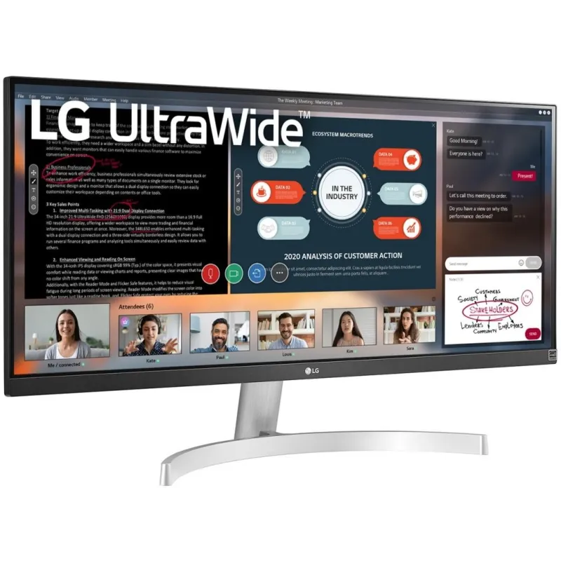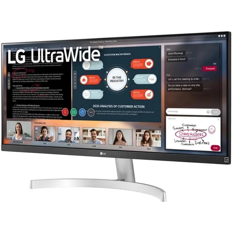 Descubre el 29WN600-W, un monitor que redefine la experiencia visual con su pantalla UltraWide Full HD de 73,7 cm (29") y una resolución de 2560 x 1080 píxeles. Diseñado para los entusiastas de la tecnología, este modelo ofrece una relación de aspecto 21:9, perfecta para multitareas y entretenimiento inmersivo.