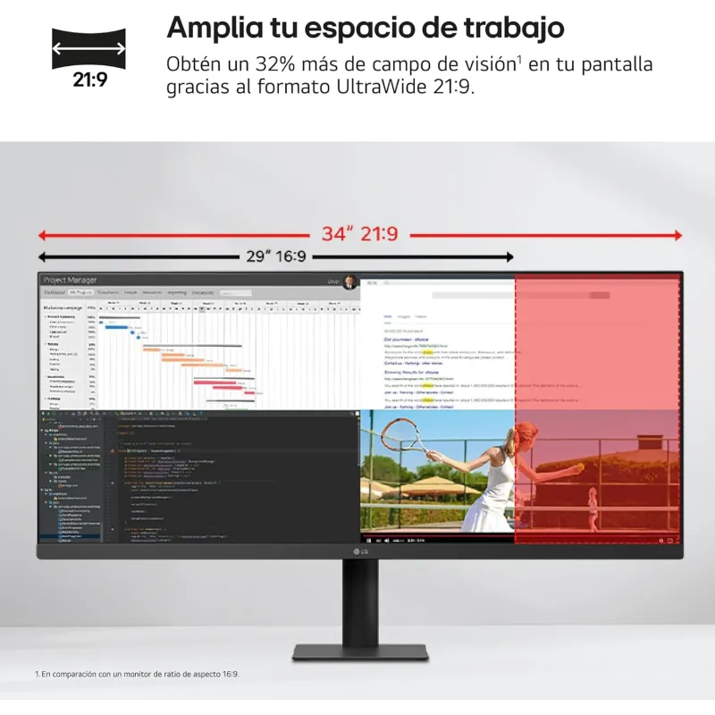 Monitor LG 34U511A-B con pantalla IPS 34 pulgadas, resolución WFHD, frecuencia de actualización 100 Hz y tecnología HDR para mayor claridad