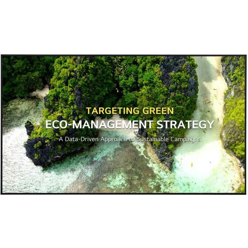 Una diagonal grande con 3840 × 2160 ayuda a que textos, precios y gráficos se lean mejor a distancia en espacios amplios.