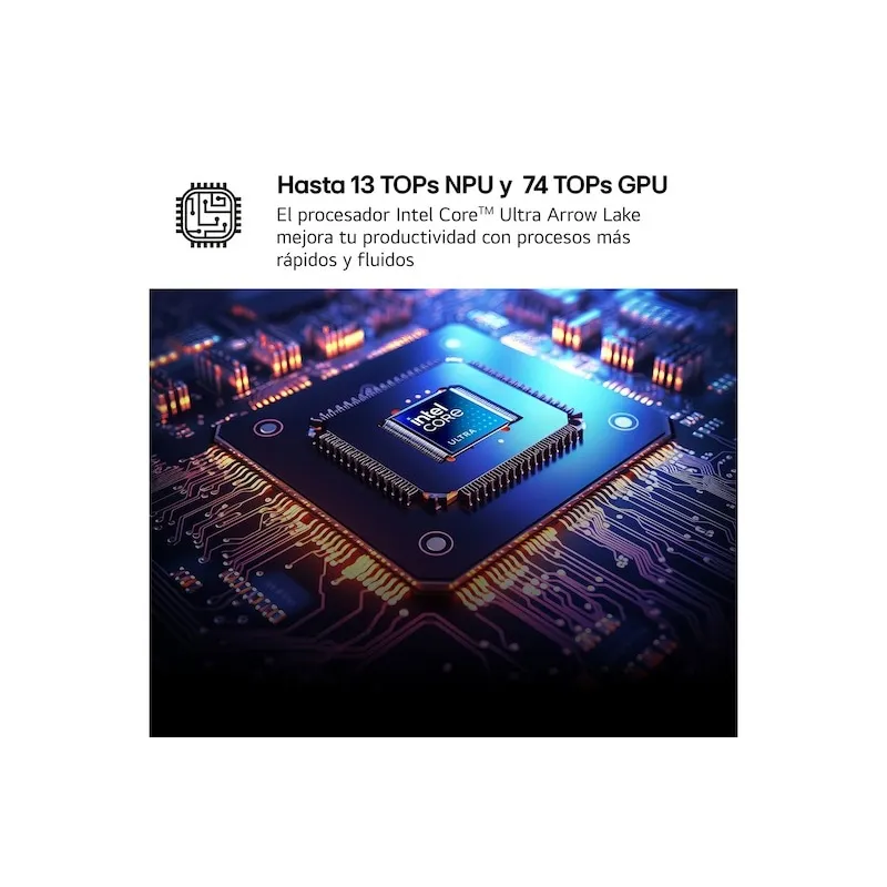 Su configuración está orientada a multitarea sostenida: Intel Core Ultra 7 255H, 32 GB LPDDR5X en doble canal (7467 MHz) y SSD M.2 NVMe Gen4 de 1 TB para alternar navegador pesado, videollamadas y aplicaciones exigentes sin ir recortando sesiones.
