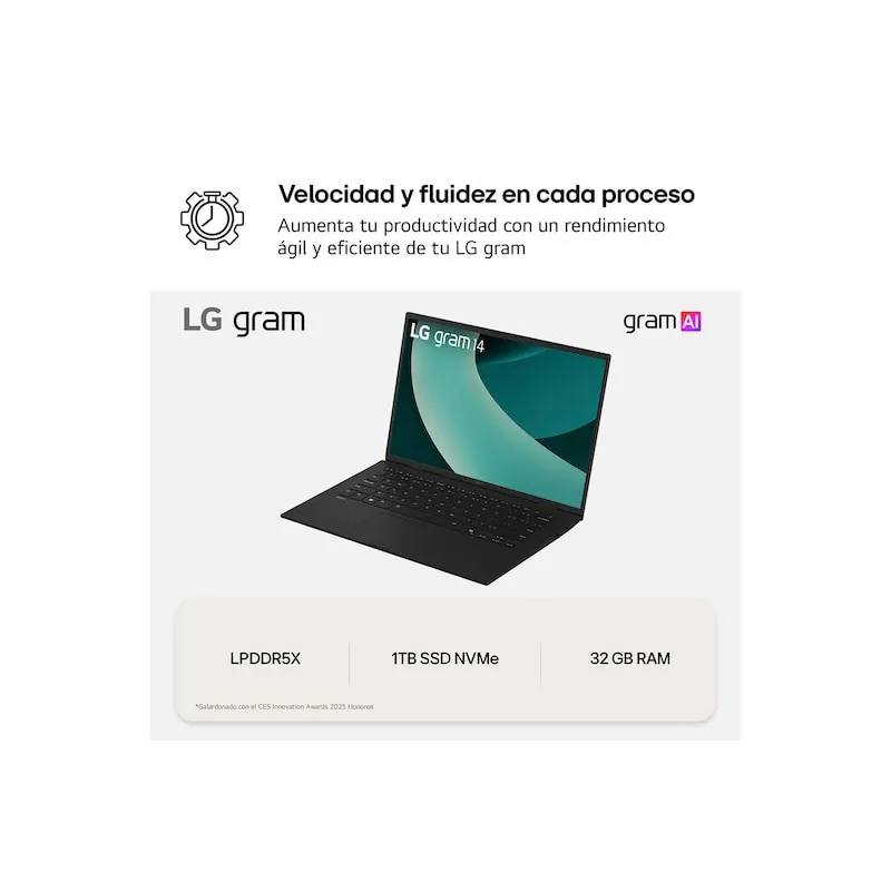 El LG gram 14ZD90T-G.AX88B combina 14" WUXGA IPS 16:10, Core Ultra 7, 32 GB, 1 TB y FreeDOS.