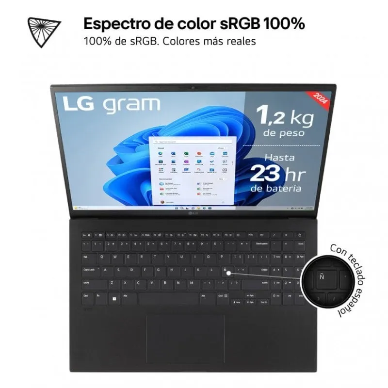 LIGEREZA EN LA PALMA DE TU MANO: Con tan solo 1,2 Kg y 16,95mm, tu LG gram te acompaña a todas partes sin sacrificar potencia ni estilo.