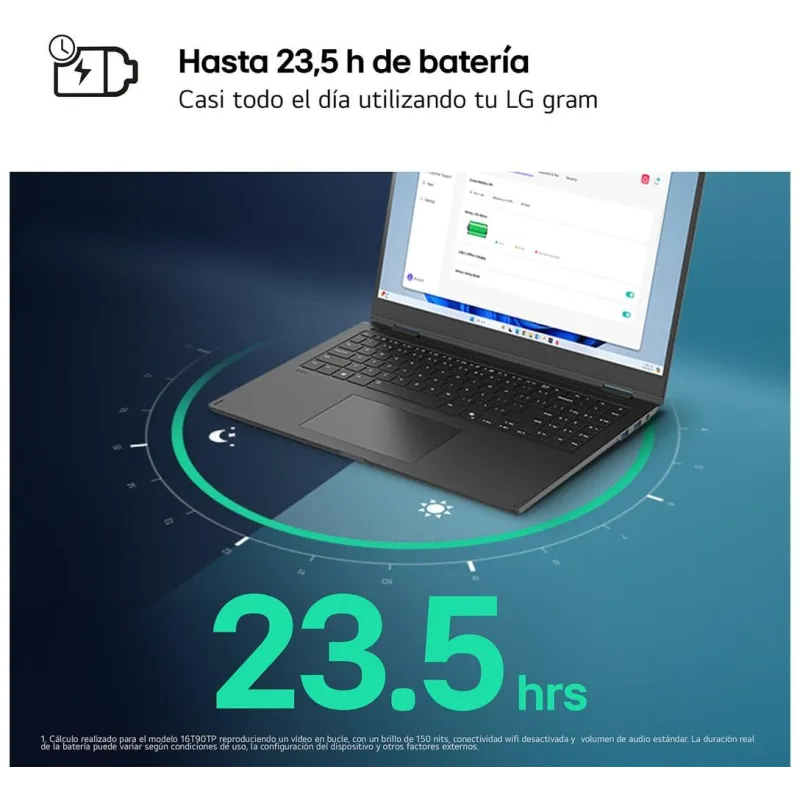 AUTONOMÍA Y CONECTIVIDAD QUE SE ADAPTAN A TU RITMO: Gracias a su batería de 80 Wh, el Ordenador Portatil Lg Gram 16Z90RU-G.AA55B ofrece una autonomía prolongada que permite trabajar durante horas sin necesidad de recarga. Su adaptador de 65 W con USB tipo C y Power Delivery facilita una carga rápida y eficiente. La conectividad es otro de sus puntos fuertes: incluye Wi-Fi 6, Bluetooth 5.1, puertos Thunderbolt 4, HDMI 2.0 y USB 3.2, permitiendo conectar múltiples dispositivos sin complicaciones. Este portátil está diseñado para acompañarte en cualquier entorno, adaptándose a tus necesidades de productividad.