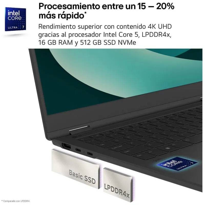 Este Ordenador Portatil Lg Gram 16Z90RU-G.AA55B incorpora 16 GB de memoria LPDDR5 a 4266 MHz y un SSD de 512 GB PCIe 4.0 con tecnología NVMe, lo que garantiza una velocidad de acceso y transferencia de datos sobresaliente. La conectividad está asegurada con Wi-Fi 6, Bluetooth 5.1, puertos Thunderbolt 4 y HDMI 2.0. Además, cuenta con teclado retroiluminado, lector de tarjetas microSD y audio Dolby Atmos para una experiencia multimedia envolvente. Su batería de 80 Wh proporciona una autonomía prolongada, ideal para jornadas intensas de trabajo o estudio. Todo esto con Windows 11 Home preinstalado, listo para usar desde el primer momento.