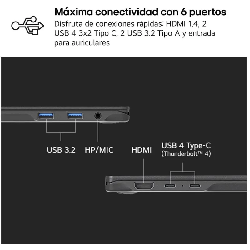 MÚLTIPLES PUERTOS DE CONEXIÓN: LG gram ofrece no solo varios puertos sino también 2 Thunderbolt™ 4 para la máxima escalabilidad.