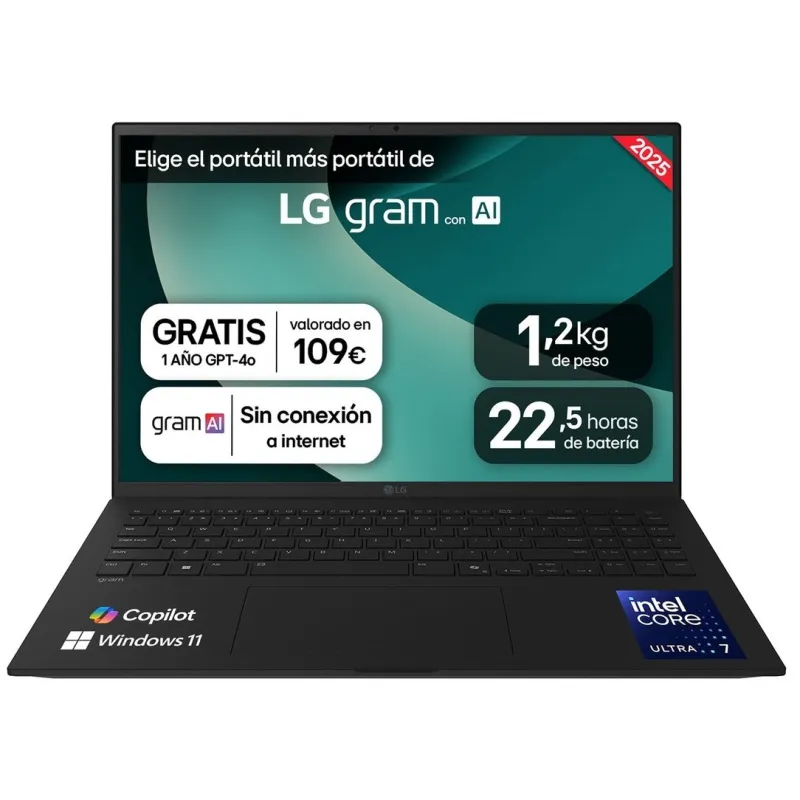 LG gram 16Z90T-G.AD8BB: 16" WQXGA, Core Ultra 7 255H, 32 GB y SSD 2 TB