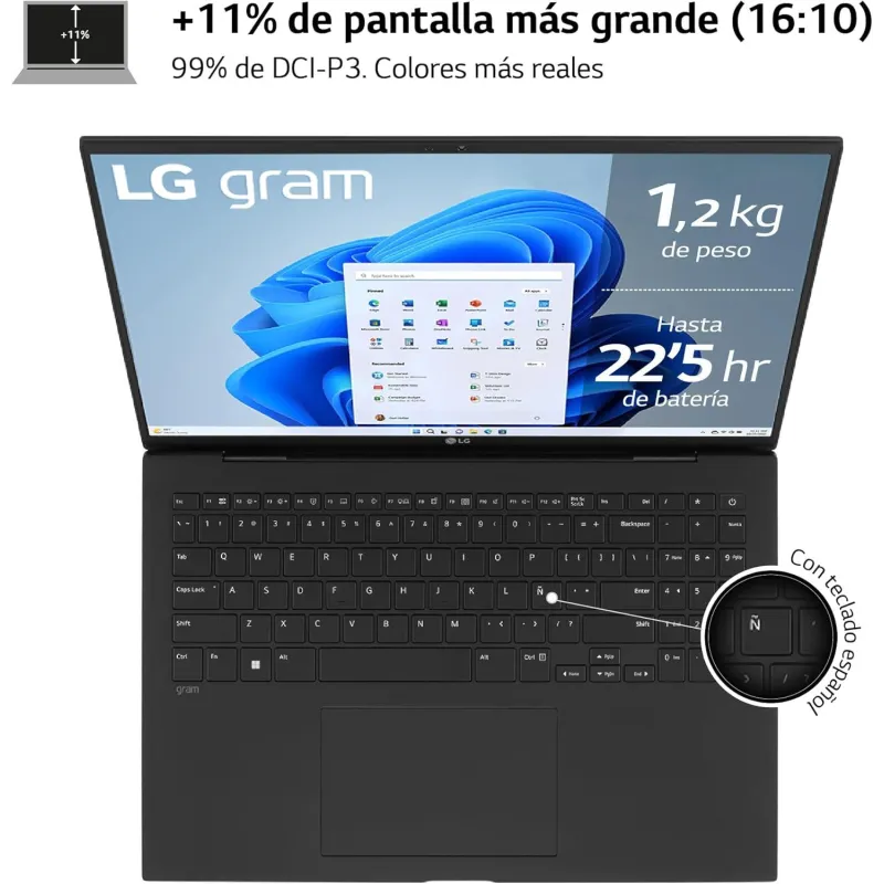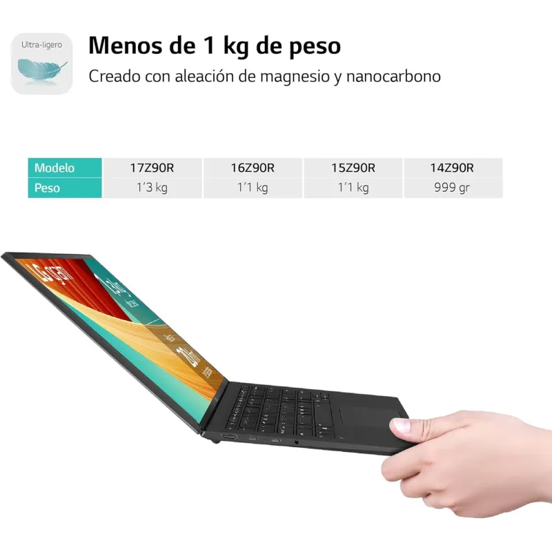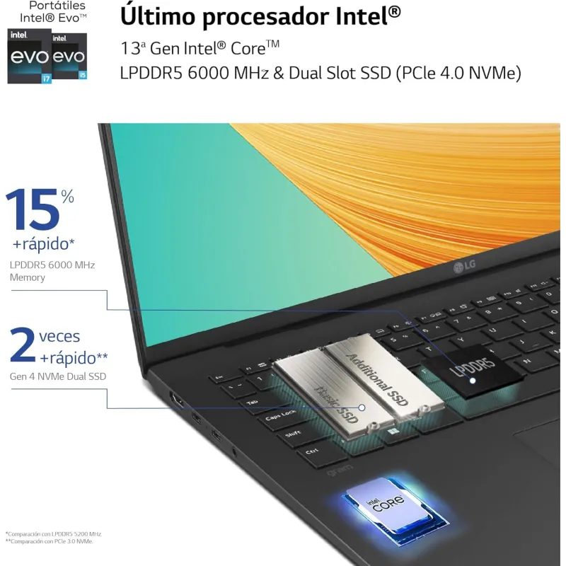 Portátil LG Gram 17Z90R-G.AD78B Procesador Intel Evo Core i7-1360P, Memoria RAM 32GB, Almacenamiento 1TB SSD, Pantalla 17" Windows 11 Home