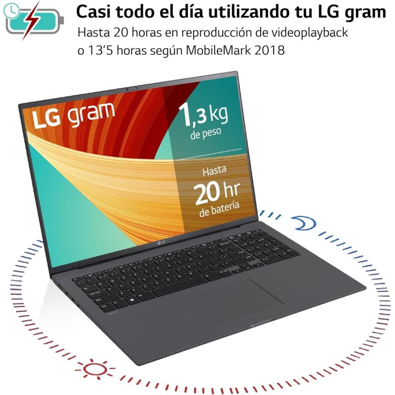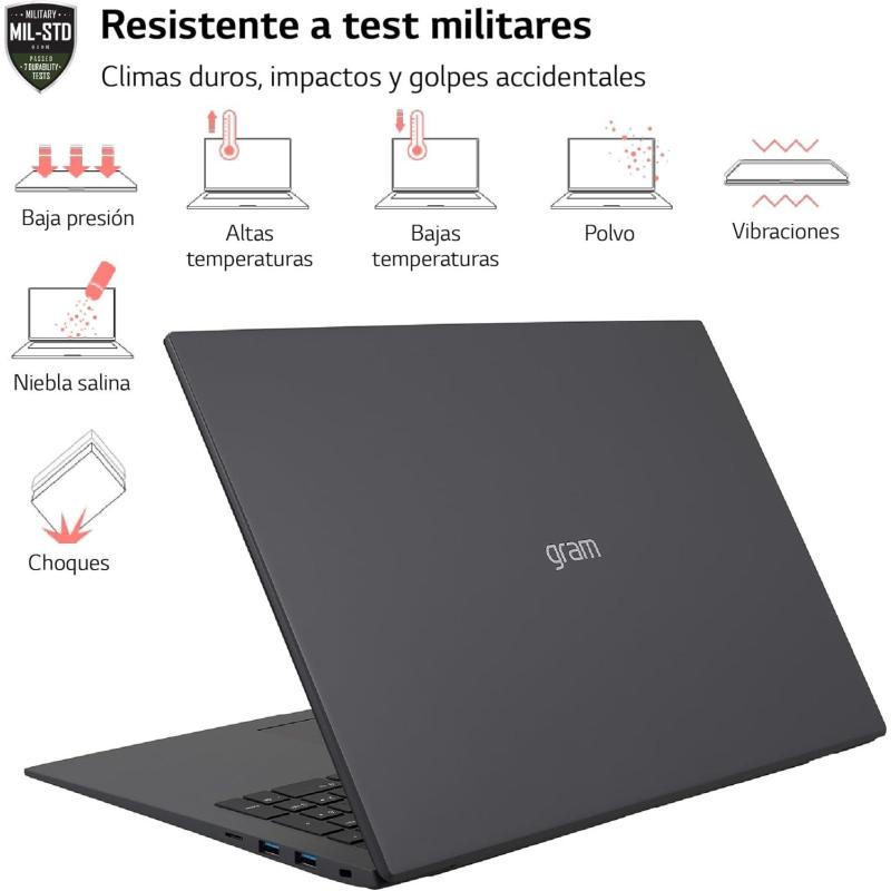 Portátil LG Gram 17Z90R-G.AD78B Procesador Intel Evo Core i7-1360P, Memoria RAM 32GB, Almacenamiento 1TB SSD, Pantalla 17" Windows 11 Home Gris