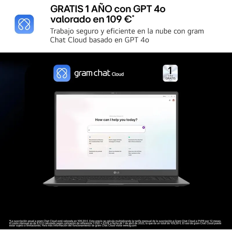 SIEMPRE ACTIVO, INCLUSO SIN CONEXIÓN CON CHAT ON-DEVICE: gram Chat On-Device examina tu navegación y datos guardados en tu LG gram para ofrecerte recomendaciones adaptadas a tus necesidades.