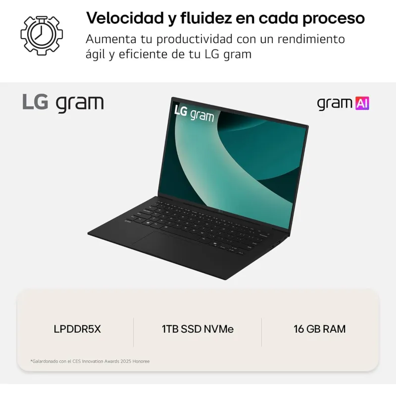 El Ordenador Portátil LG Gram 17Z90T-G.AD88B redefine la movilidad y el rendimiento con un diseño ultraligero y resistente gracias a su estructura de carbono y magnesio. Equipado con un potente procesador Intel Core Ultra 7 255H de 16 núcleos y 16 hilos, este portátil ofrece un rendimiento excepcional para tareas exigentes, incluyendo edición de vídeo, programación y multitarea intensiva. Su pantalla WQXGA 17 pulgadas con resolución de 2560 x 1600 píxeles y tecnología IPS proporciona una experiencia visual envolvente, ideal para profesionales del diseño y la creación de contenido. Además, incorpora 32 GB de memoria LPDDR5x y un veloz almacenamiento SSD de 1 TB con interfaz PCIe 4.0, garantizando velocidad y capacidad de respuesta en todo momento.