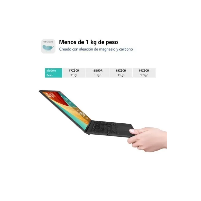 UN PORTÁTIL QUE NO PESA: ¿Te imaginas llevar un portátil de 17 pulgadas que solo pesa 1,45 kg? Con el nuevo portátil de LG, no tienes que imaginarlo, puedes vivirlo. Su chasis de magnesio y nanocarbono le confiere una resistencia y una ligereza incomparables, superando 7 pruebas del estándar militar STD-MIL-810H. Podrás llevarlo contigo a donde quieras, sin renunciar a una pantalla grande y de alta resolución.