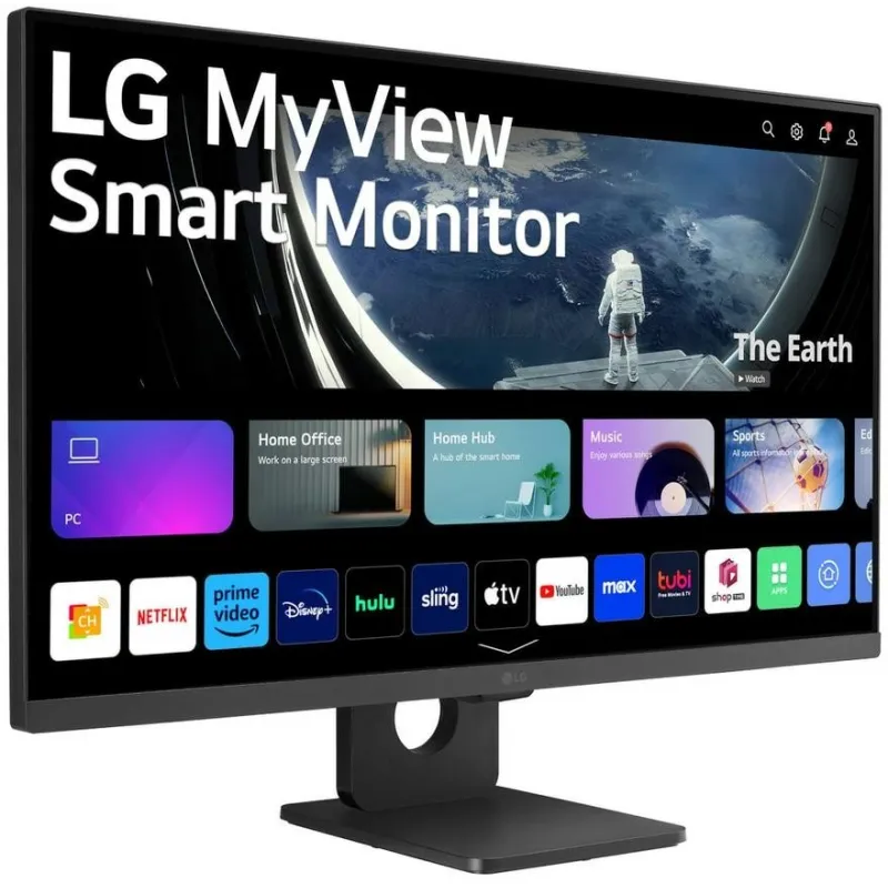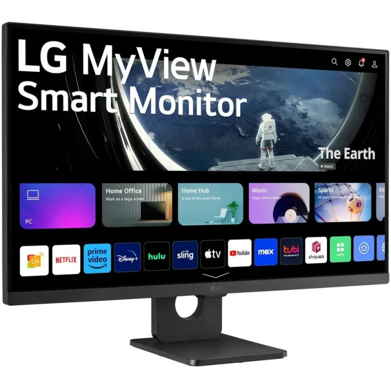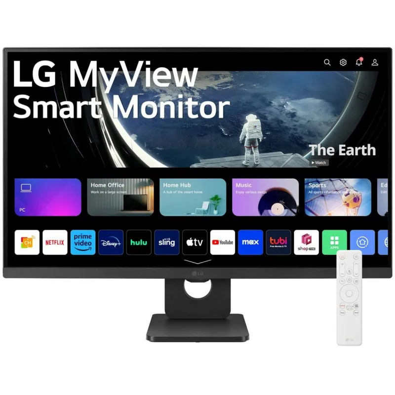 TRABAJA DE FORMA MÁS INTELIGENTE, JUEGA MEJOR: Nuestro Monitor LG MyView Smart Monitor 27SR50F-B está diseñado para tu oficina en casa y para entretenimiento. Mire su contenido favorito sin esfuerzo con varias aplicaciones de transmisión y configure un entorno de oficina en casa al instante, con una PC conectada o sin ella.