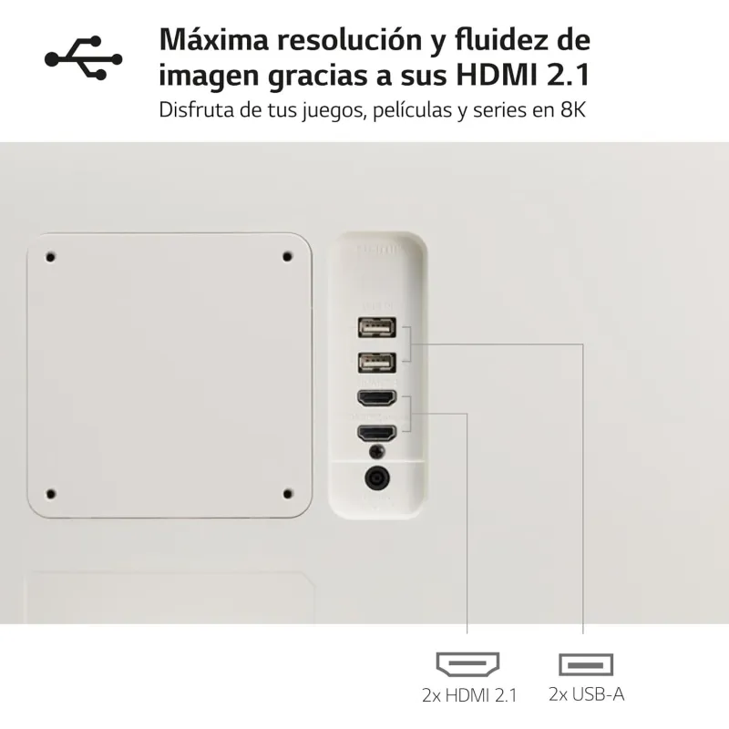 CONECTIVIDAD AVANZADA: Con dos puertos HDMI versión 2.1 y conectividad Wi-Fi y Bluetooth, las posibilidades son ilimitadas. Navega por la web con facilidad, y con la compatibilidad con SmartThings y AirPlay, tu contenido siempre está a un clic de distancia.