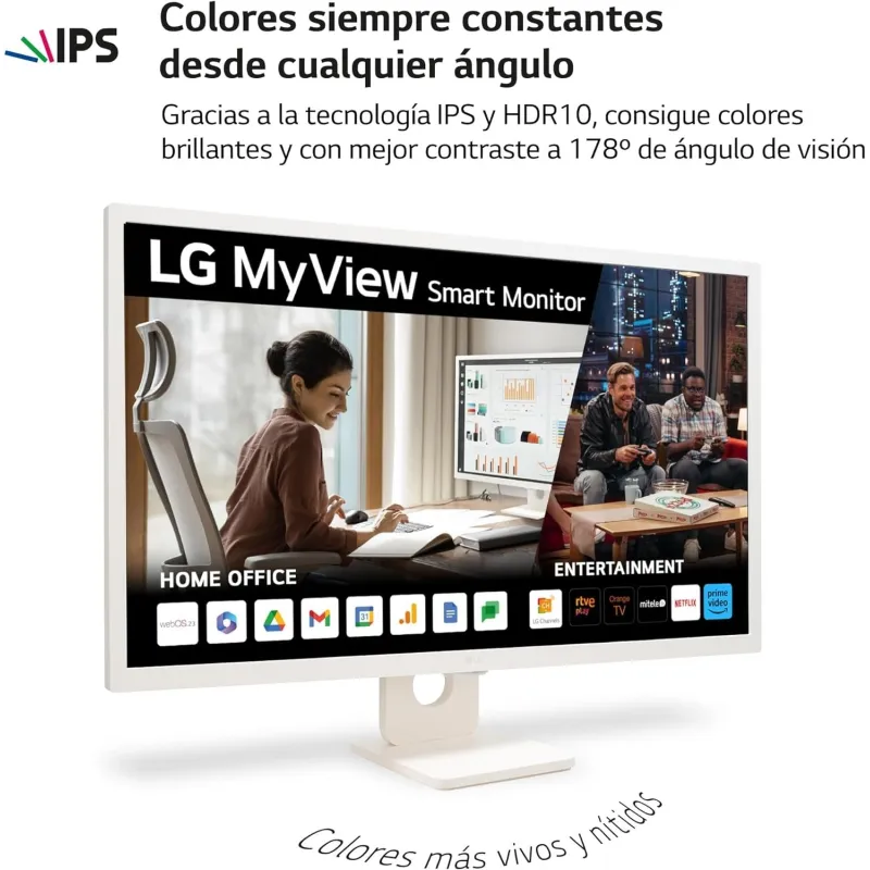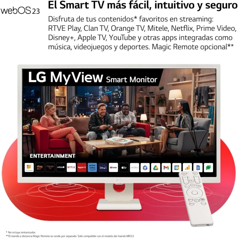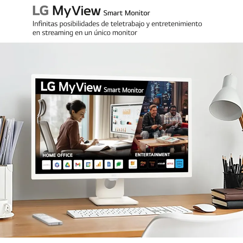 DISFRUTA DE CONTENIDO PERSONALIZADO: El único con el que disfrutar de más contenidos en streaming* como: RTVE, Mitele, Orange, Netflix, Prime Video, Disney+, Apple TV, YouTube, videojuegos y mucho más. LG MyView Smart Monitor WebOS23, más fácil, intuitivo y seguro.
