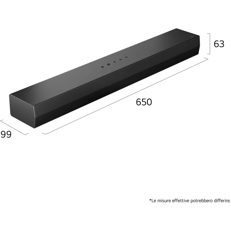 Su tamaño juega a favor si te preocupa el espacio. Con 650 mm de ancho y solo 63 mm de alto, suele encajar bien en muebles estrechos y en habitaciones donde no quieres que el sonido mande sobre la decoración. También evita una fuente habitual de lío: aquí no hay subwoofer que colocar ni sincronizar.