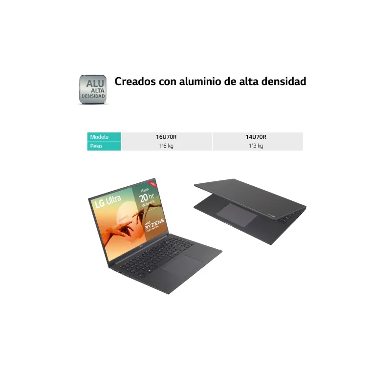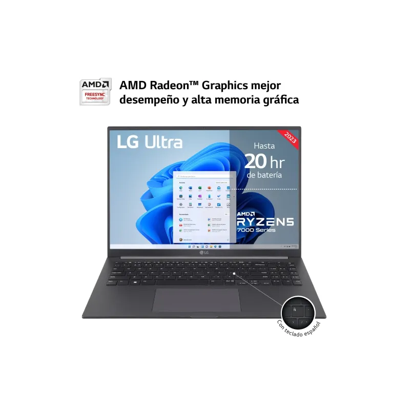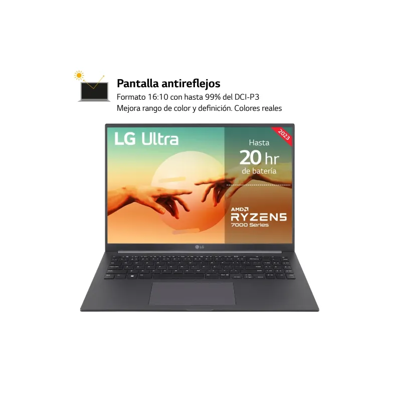 POTENTE CPU AMD: LG Ultra 16U70R con procesadores de la serie AMD RYZEN 7000 admite multitarea con un rendimiento potente.