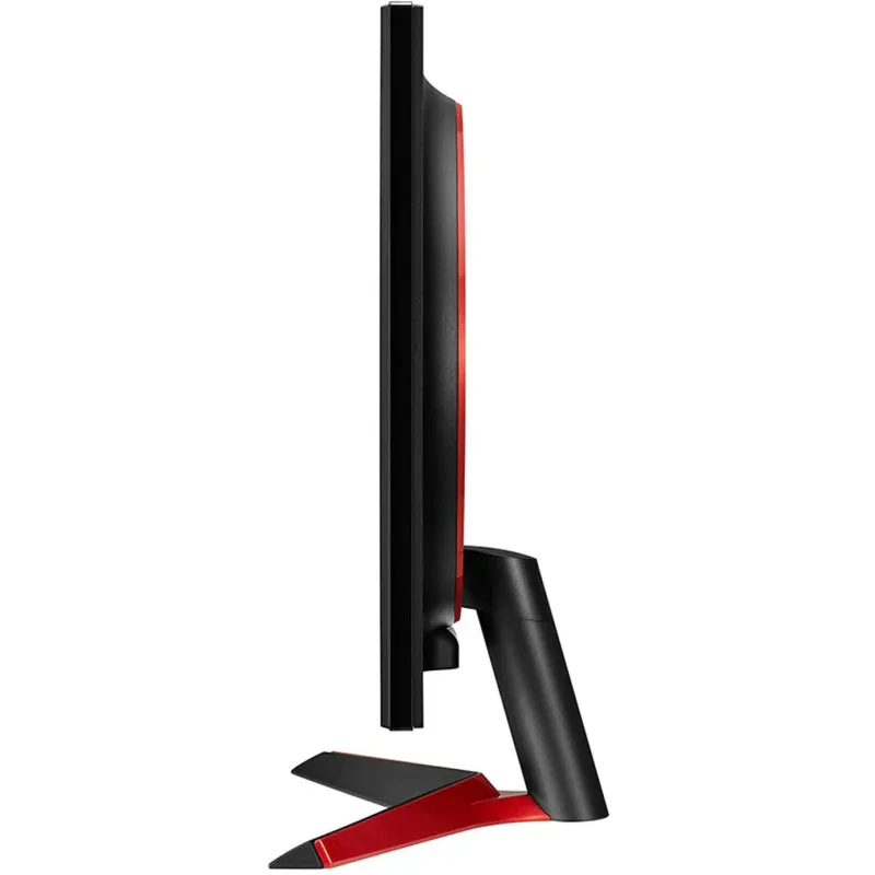 El diseño elegante y moderno en color negro, junto con la funcionalidad de montaje VESA, permite una integración perfecta en cualquier configuración de juego. A pesar de su robustez, el monitor es sorprendentemente ligero, pesando solo 3,7 kg con soporte y 3,2 kg sin él, lo que facilita su manejo y ajuste.