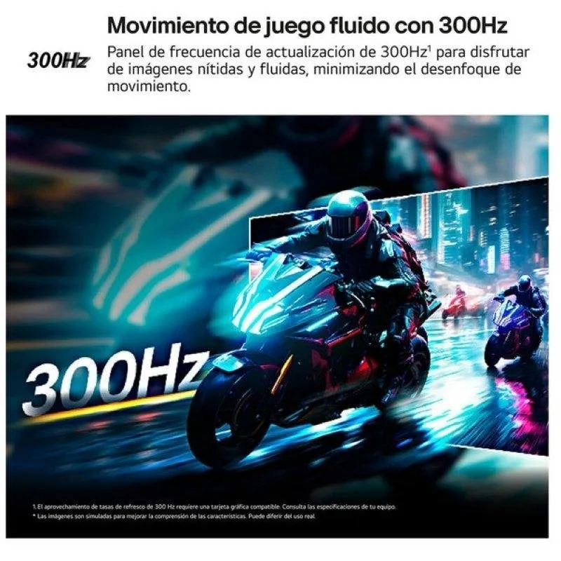 La resolución 2560 × 1440 equilibra detalle y rendimiento, sacando partido a tarjetas gráficas modernas en juegos de eSports y AAA, mientras que los 300 Hz reducen al mínimo el desenfoque de movimiento al mover la mira, hacer giros rápidos o seguir múltiples enemigos en pantalla.