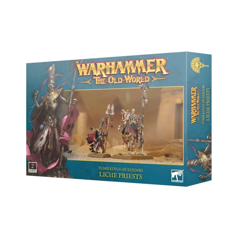 Los Liche Priests aportan hechizos y reglas de apoyo que refuerzan a esqueletos, guardia y carros, haciendo tu ejército de Tomb Kings of Khemri más resistente y versátil en mesa.