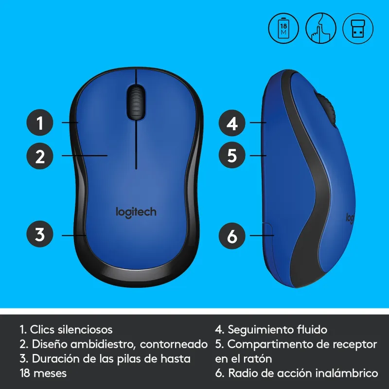 SIMPLE. FIABLE. ROBUSTO: Disfruta de conexión inalámbrica hasta a 10 m de distancia* gracias al nano receptor tipo "conectar y olvidar". M220 SILENT dispone del seguimiento óptico avanzado Logitech® para movimientos ultraprecisos en casi todo tipo de superficies. Sin complicaciones, no requiere software. Funciona con ordenadores basados en Windows®, Mac, Chrome OS™ o Linux®.