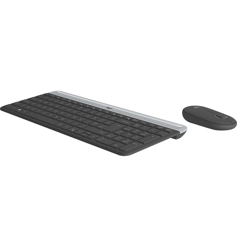 El conjunto de teclado y ratón inalámbrico en color Grafito está diseñado para ofrecer una experiencia de uso cómoda y eficiente para cualquier usuario. El teclado QWERTY en español completo incluye un teclado numérico y teclas de Windows, facilitando la navegación y la productividad diaria.