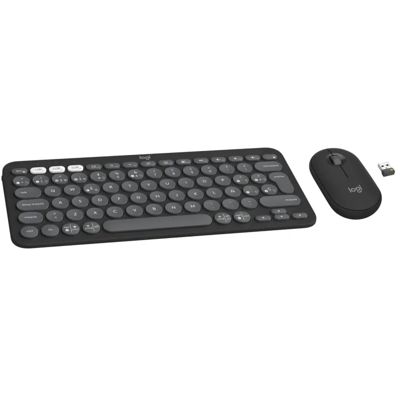 El Kit de Teclado y Ratón Logitech 920-012227 incluye también el Pebble Mouse 2 M350s, un ratón óptico ambidiestro con resolución de 4000 DPI y tecnología de conectividad inalámbrica mediante Bluetooth o receptor USB tipo A. El ratón, al igual que el teclado, cuenta con interruptor de encendido/apagado y una batería con duración de hasta 24 meses, mientras que el teclado ofrece hasta 36 meses de autonomía con dos pilas AAA. El conjunto incluye el receptor Logi Bolt y viene listo para usarse con pilas preinstaladas. Además, el teclado cuenta con compatibilidad multidispositivo, lo que permite alternar fácilmente entre varios equipos. Su diseño en color grafito y acabado monocromo aporta un estilo sobrio y profesional. Este kit es una elección excelente para quienes valoran la estética, la funcionalidad y la eficiencia energética.