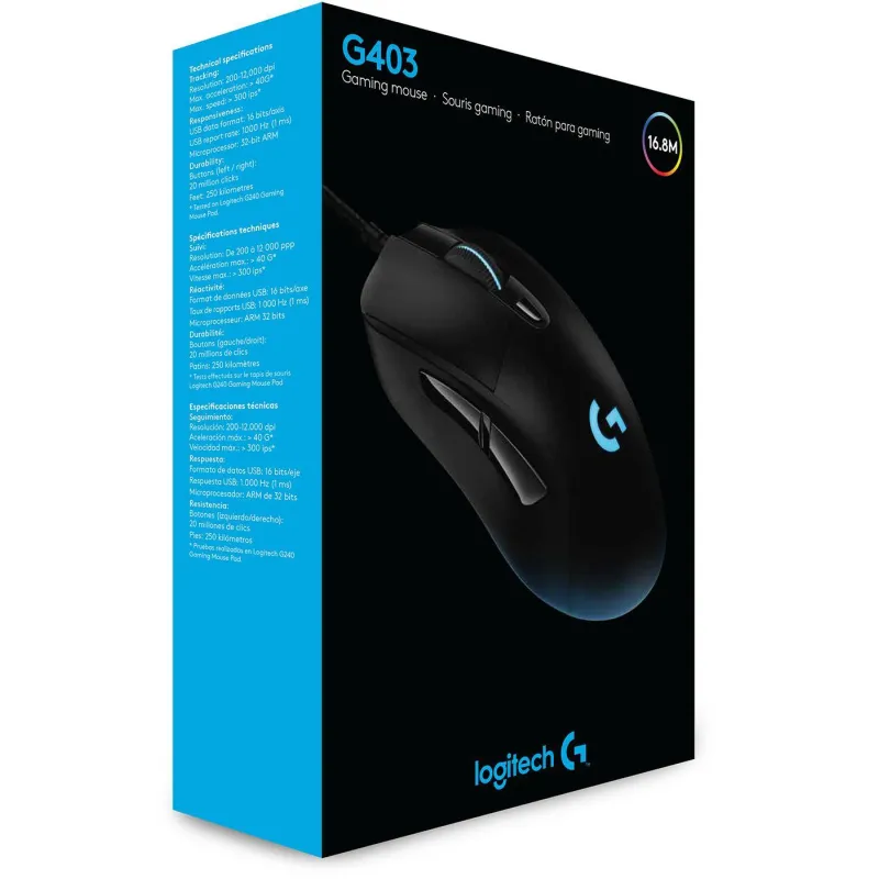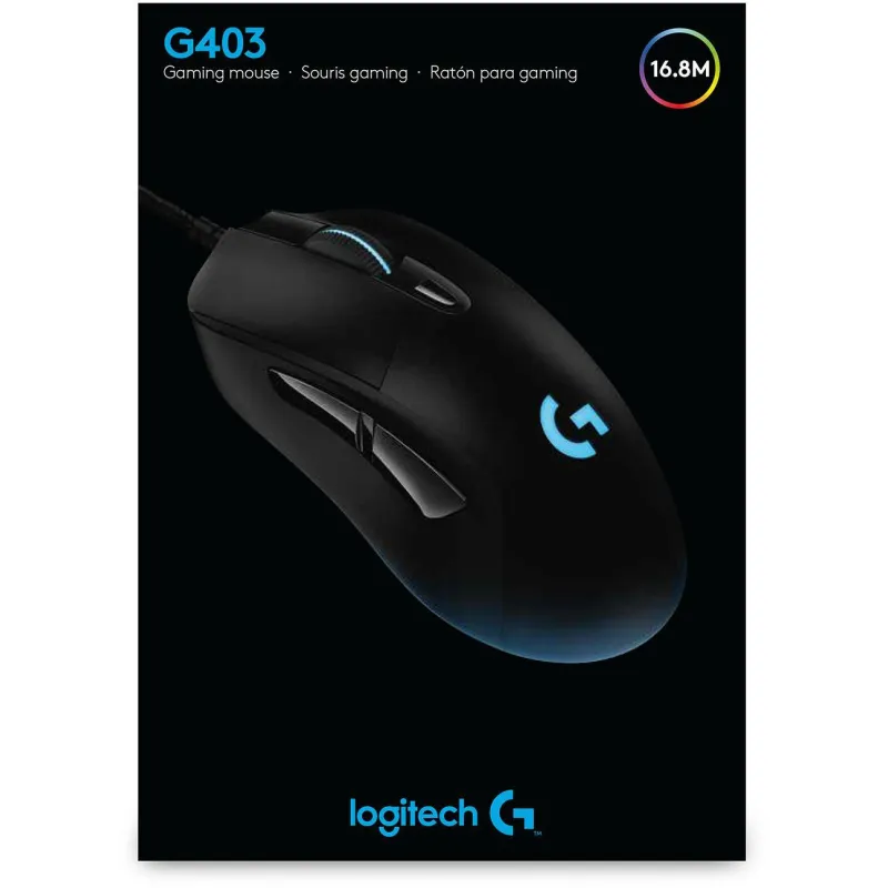 Ratón Logitech G403 Hero Óptico con 6 Botones Conexión USB-A Gaming 25600DPI Tiempo de Respuesta de 1 ms Longitud del Cable de 2.1m Negro