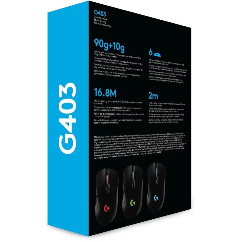 EL RATÓN LOGITECH® G403 HERO PARA GAMING: El ratón Logitech® G403 HERO para gaming incluye el sensor avanzado HERO 25K de próxima generación con sensibilidad máxima de 100-25.600 dpi. La iluminación RGB de espectro completo responde a la acción de juego, al audio y al color de la pantalla. G403 HERO tiene un diseño cómodo para gaming, con una pesa de 10 g extraíble. Con software G HUB para gaming.