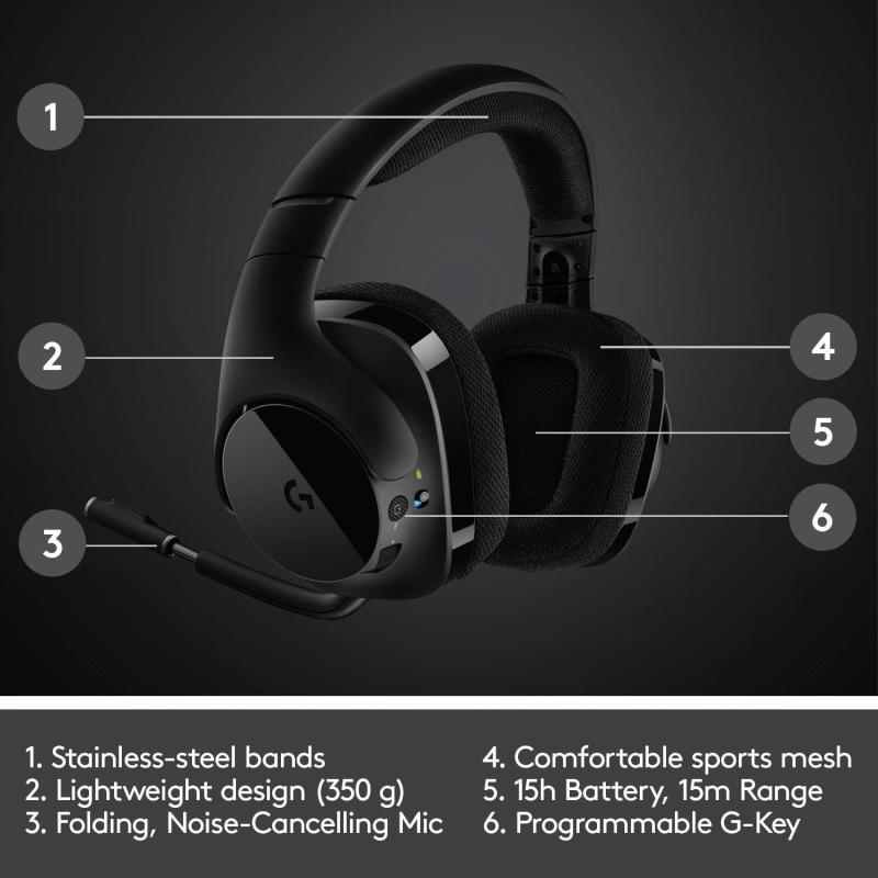 AURICULARES PARA GAMING CON MIC Y SONIDO ENVOLV DTS 7.1 G533: Graves contundentes y agudos nítidos de transductores Pro-G de malla híbrida. Sí. Tecnología inalámbrica y duración de pilas avanzada. Sí.