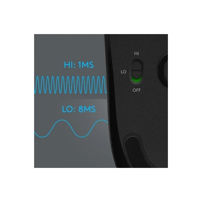 ADMINISTRACIÓN DE ENERGÍA AVANZADA: Cambia rápidamente entre los modos HI y LO con sólo mover un conmutador. En modo HI, G603 ofrece rendimiento máximo con velocidad de respuesta de 1 ms LIGHTSPEED y hasta 500 horas de gaming ininterrumpido. Cuando no estés jugando, cambia al modo LO y prolonga la duración de las pilas. El modo LO ofrece una velocidad de respuesta de 8 ms con hasta 18 meses de uso con dos pilas AA.