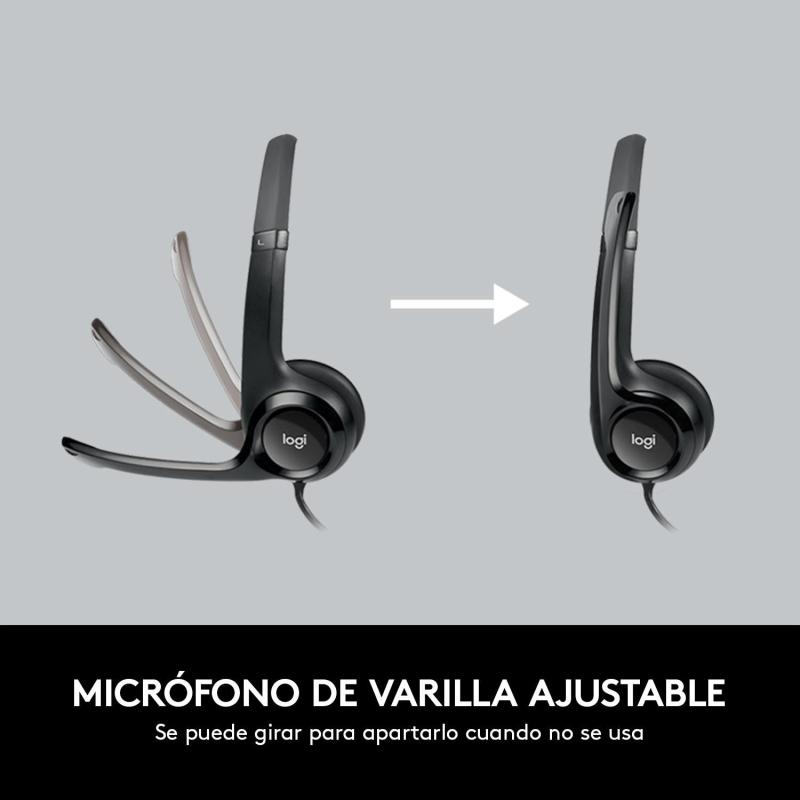MICRÓFONO CON SUPRESIÓN DE RUIDO: Minimiza el ruido de fondo no deseado para permitir conversaciones claras. La colocación del micrófono rígido en el lado izquierdo se puede ajustar para mejorar la captura de voz. La varilla movible se puede guardar, para que no estorbe cuando no se use.