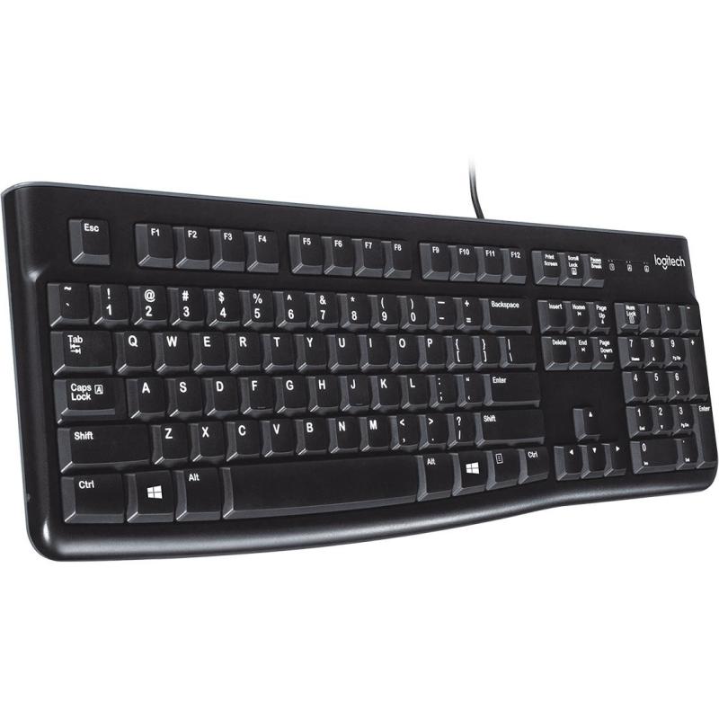 Teclado Logitech K120 ergonómico, diseño QWERTY, conexión USB-A, cable de 1.5 Metros de Longitud, color Negro