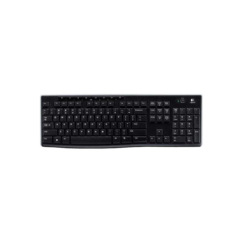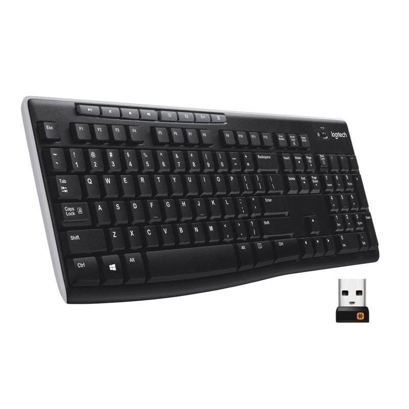 TECLADO INALÁMBRICO LOGITECH® K270: Confiable conexión inalámbrica dondequiera que uses tu teclado. El diminuto receptor Logitech Unifying es lo suficientemente pequeño como para permanecer en tu portátil. Además, puedes agregar fácilmente otro ratón o teclado compatible, sin la molestia de múltiples receptores USB. Con la conectividad inalámbrica avanzada de 2.4 GHz de Logitech, disfrutarás prácticamente sin pérdida de señal desde hasta 10 metros de distancia.* Puedes usarlo durante dos años sin problemas de batería.** Ocho teclas de acceso rápido y una configuración plug-and-play que toma solo segundos se suman a la simplicidad. El diseño familiar de tamaño completo, que incluye un teclado numérico, te ofrece todas las teclas correctas justo donde las esperas. Y está construido para durar con la alta calidad y fiabilidad por la que Logitech es conocido, con un diseño resistente a salpicaduras*** y teclas recubiertas con UV para mayor durabilidad.