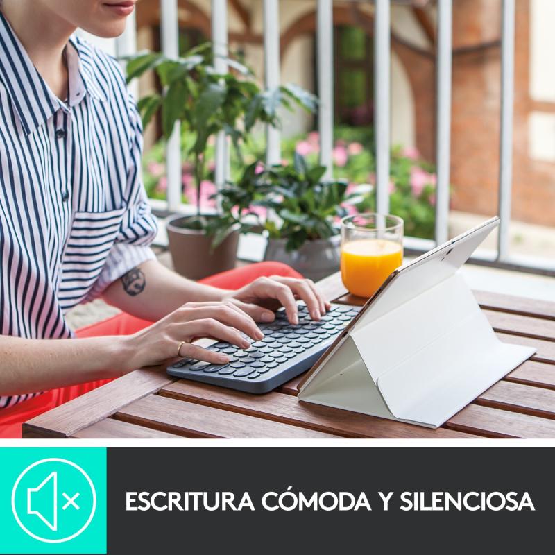 ESCRIBE EASY-SWITCH ESCRIBE: Conecta hasta tres dispositivos (incluso con sistemas operativos diferentes) y alterna entre ellos con una sola pulsación. Para que puedas escribir, cambiar y seguir escribiendo.