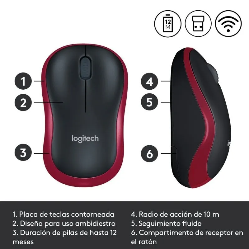 Logitech M185 Ratón Inalámbrico 1000DPI Rojo