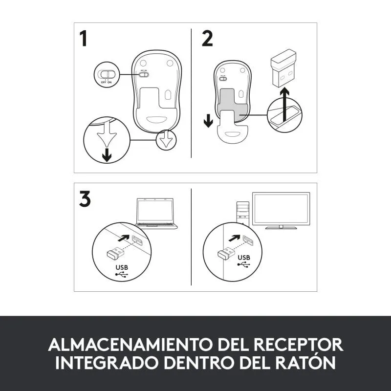 NANO RECEPTOR TIPO "CONECTAR Y OLVIDAR": Es compatible con ordenadores que utilizan Window, Chrome OS™ y Mac®. Es tan pequeño y discreto que si lo conecta a un puerto USB, se olvidará completamente de él. Además, se acabaron las preocupaciones por la pérdida de receptores.