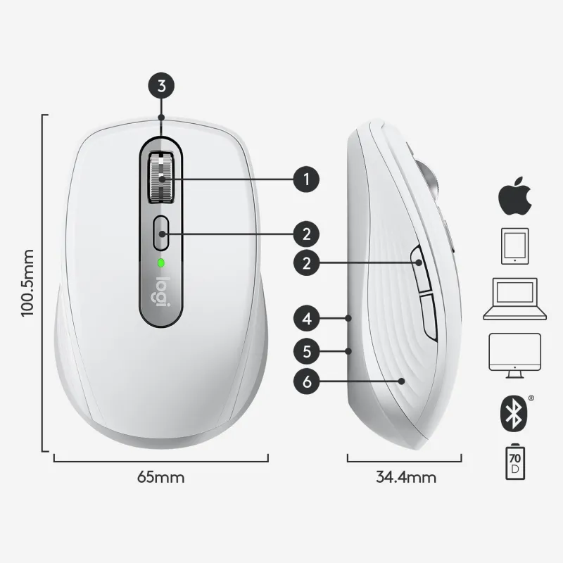 DOMÍNALO, EN CUALQUIER LUGAR: Con MX Anywhere 3 para Mac, un ratón de alto rendimiento compacto diseñado para tu Mac o iPad sin importar dónde trabajes, desde la oficina en casa, hasta la cafetería, o la sala de espera del aeropuerto.