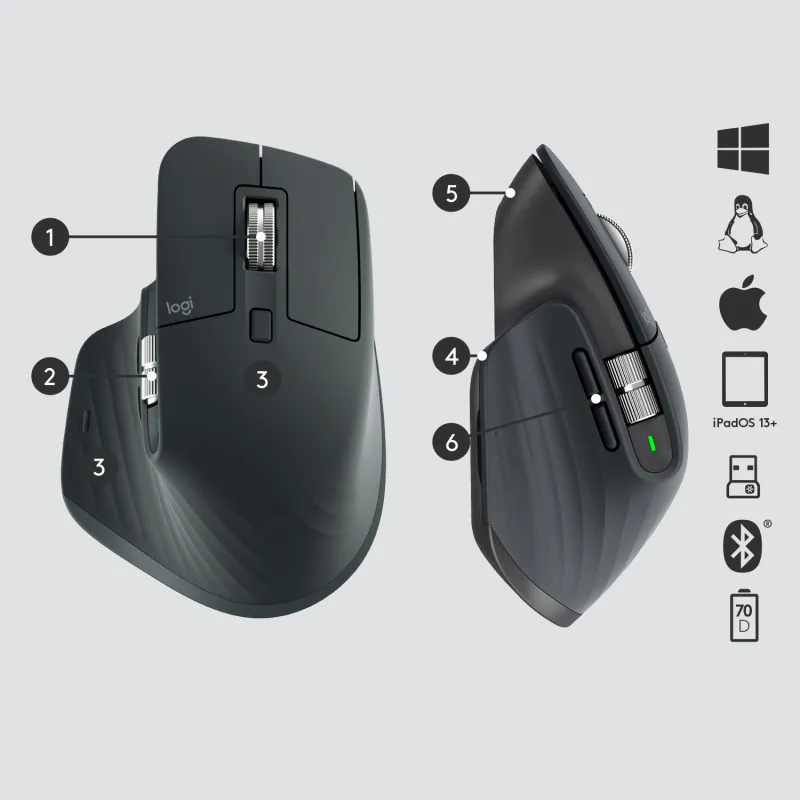 SENSOR DARKFIELD, PRECISIÓN EN CUALQUIER SUPERFICIE: El MX Master 3 cuenta con la tecnología de sensor Darkfield de alta precisión, que te permite usarlo en cualquier superficie, incluso en cristal. Además, puedes ajustar la sensibilidad del ratón desde 200 hasta 4.000 dpi, según tus necesidades. Así, tendrás un control total y preciso de tu cursor.
