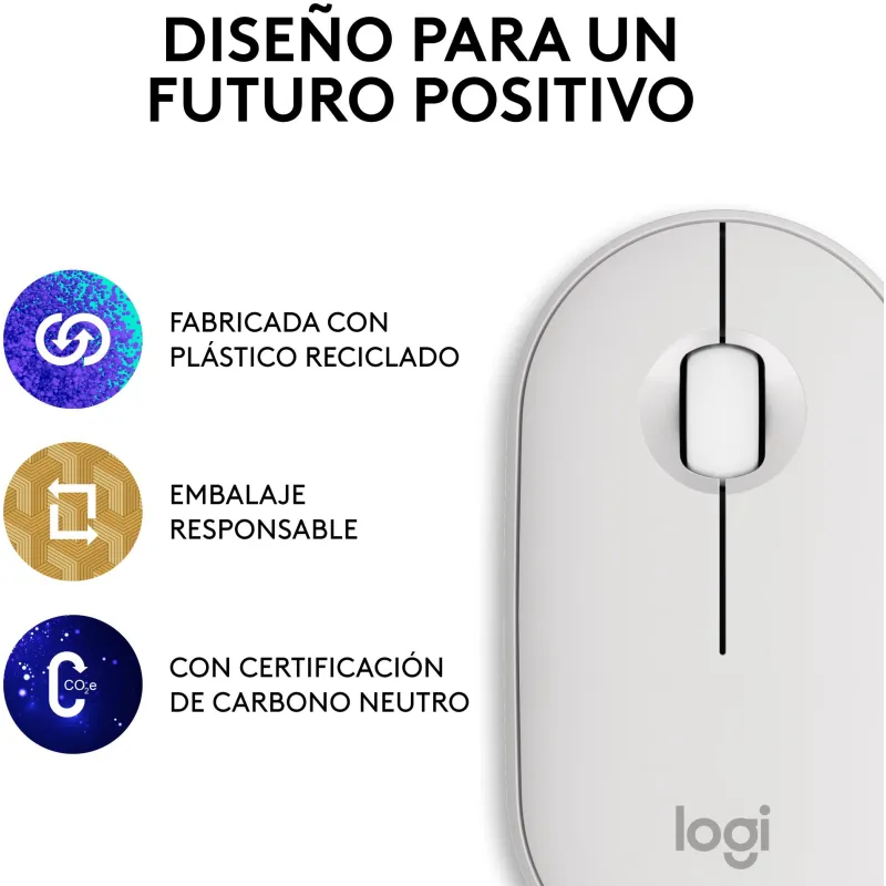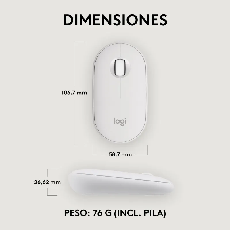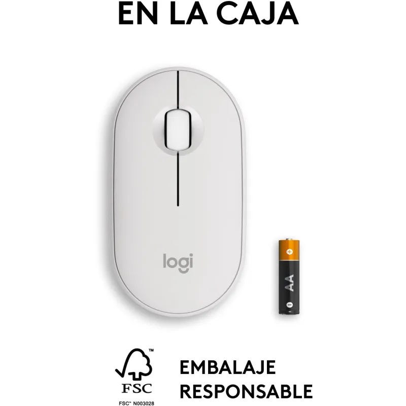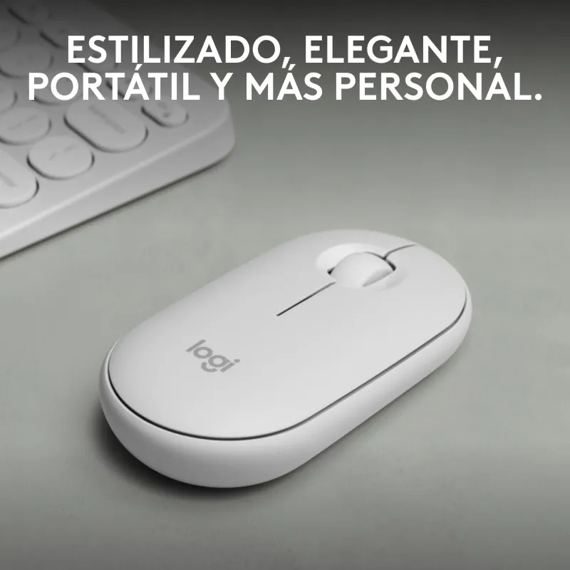 El Logitech Pebble Mouse 2 M350s (Tono blanco) está orientado a movilidad: formato compacto, peso ligero y funcionamiento con pila para que lo metas en la mochila y listo.
